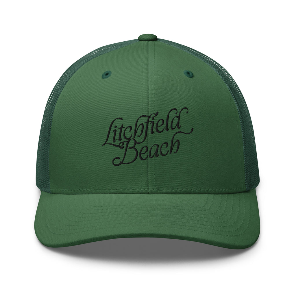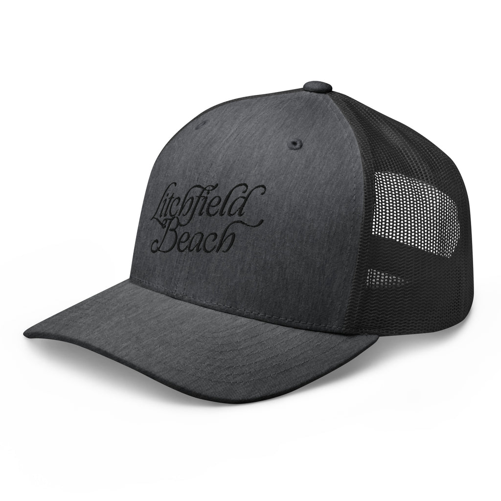 Litchfield Beach South Carolina Embroidered Trucker Hat | Black Thread