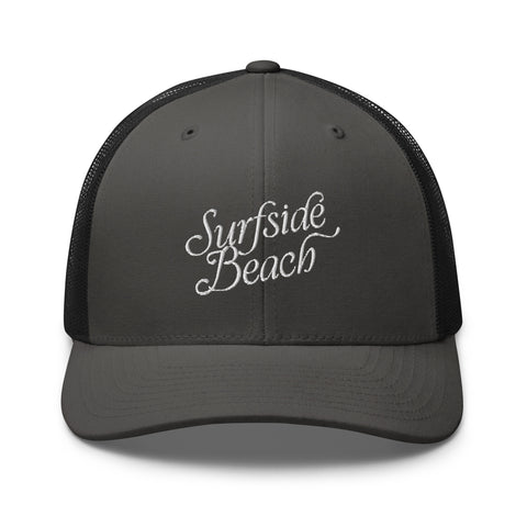 Surfside Beach South Carolina Embroidered Trucker Hat | White Thread